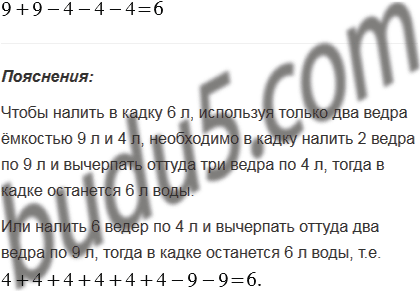 Есть два ведра ёмкостью 9 л и 4 л. Как, пользуясь ими, можно налить в кадку 6 л воды?