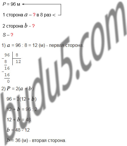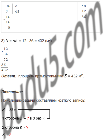 Периметр прямоугольника равен 96 м, и он в 8 раз больше одной из сторон прямоугольника. Найдите площадь прямоугольника.