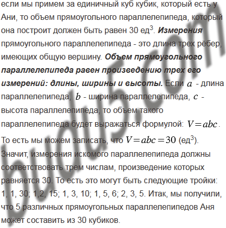 У Ани есть 30 одинаковых кубиков. Сколько различных прямоугольных параллелепипедов она может из них составить, если для построения одного параллелепипеда надо использовать все имеющиеся 30 кубиков?