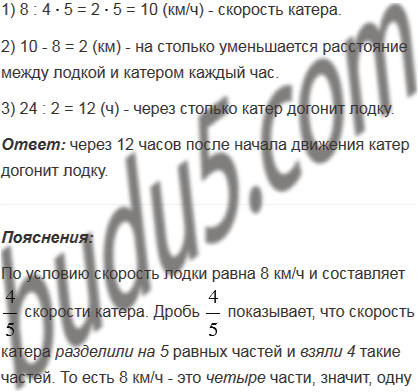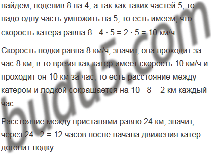 скорости катера. Через сколько часов после начала движения катер догонит лодку?