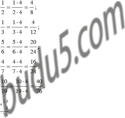 Умножьте на 4 числитель и знаменатель каждой из дробей Запишите соответствующие равенства.