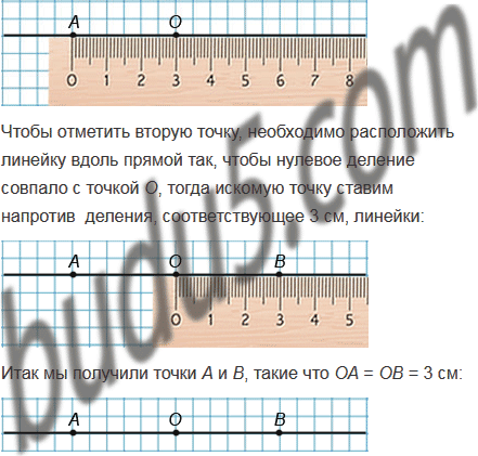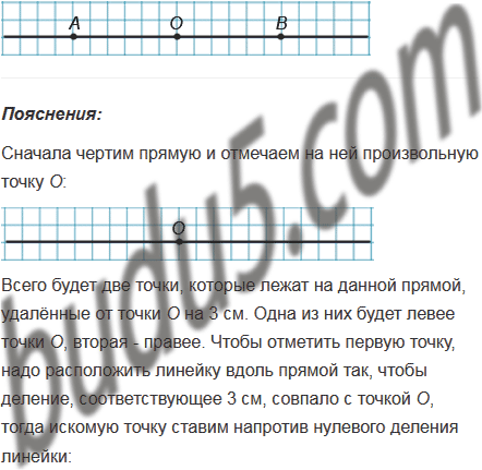 Начертите прямую и отметьте на ней произвольную точку О. Найдите на прямой все точки, удалённые от точки О на 3 см.