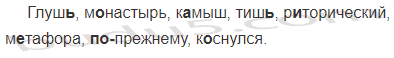 Глуш(?), м..настырь, к..мыш(?), тиш(?), р..торический, м..тафора, (по)прежнему, к..снулся.