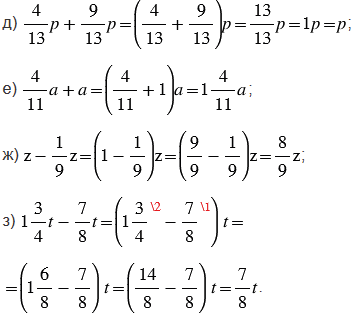 Чтобы упростить данные выражения, используем распределительное свойство умножения относительно сложения или относительно вычитаем, а именно выносим одинаковый множитель (букву) за скобки и выполняем вычисления в скобках по правилам, указанным ниже.